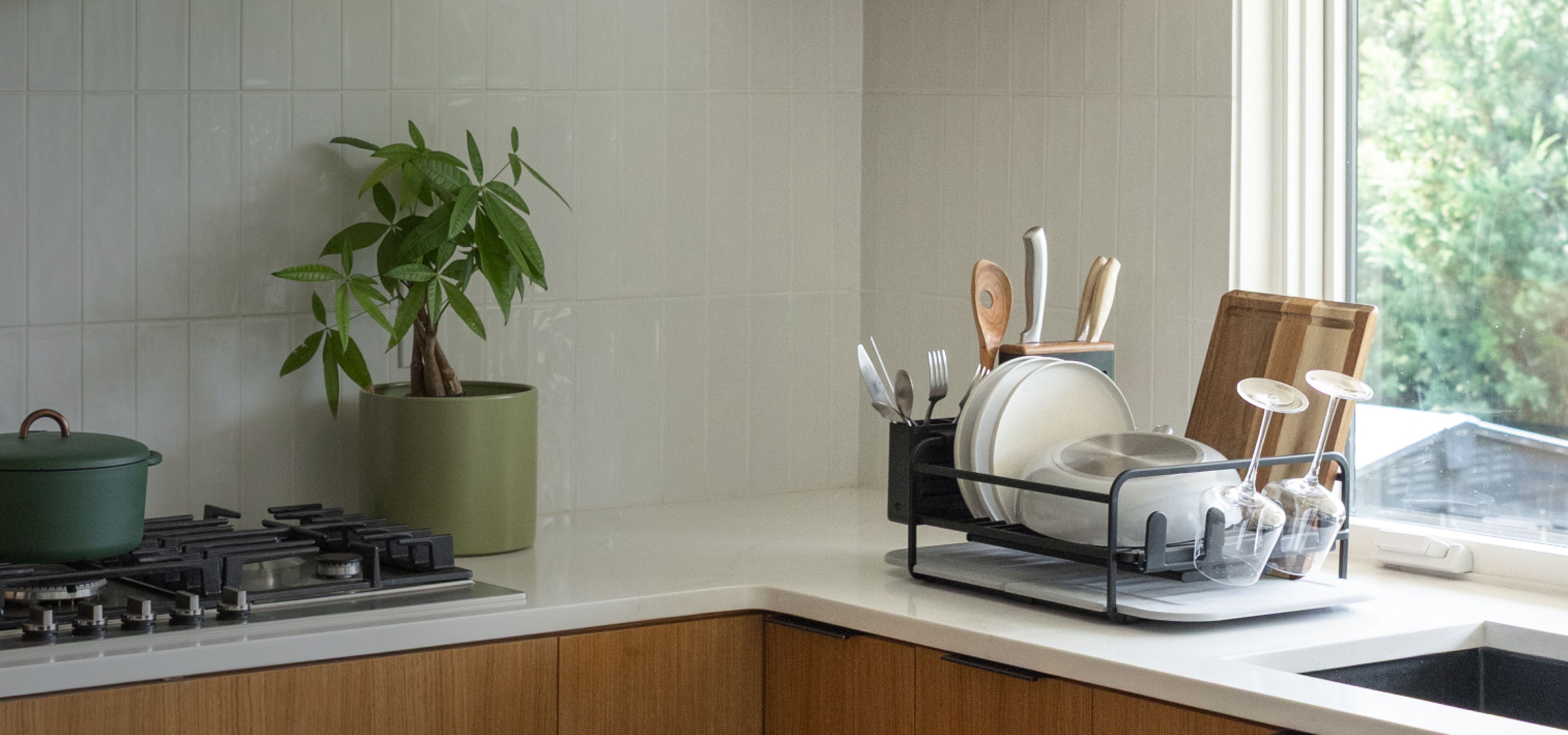 Swap damp dish towels for a quick-drying rack designed to stay on display.