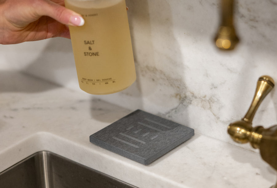 More than just a soap tray, the quick-drying caddy is designed to fit seamlessly into your daily routine. Use it by the kitchen sink to hold dish brushes and sponges, or in the bathroom for soap bars and toothbrushes. Its elevated design catches excess water to keep surfaces dry, while the concrete base adds a touch of modern texture to any countertop.
